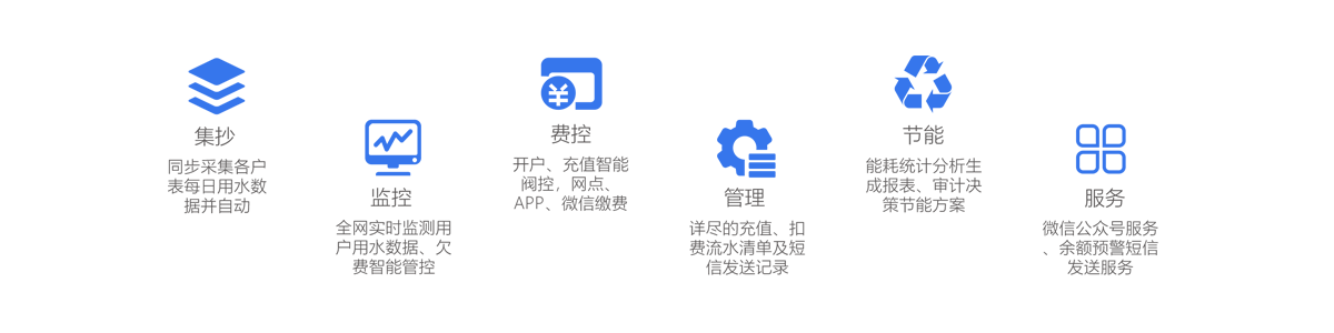 综合预付费管理系统采用云数据存储与处理,平台支持在线自动预付电费,具备管理方自动收取水电费、远程读表、远程智能通断电、实时数据采集、是一个完整精确的计量体系,智能化的用户端可从数据采集到收费管理每个环节都平台化、信息化、智能化,实现远程读表、拉合闸、在线开户缴费、价格方案的设定、消息提醒、营收统计等功能,以保证用电管理的可靠性、需求侧统一化管理、先购电后用电的一站式服务。